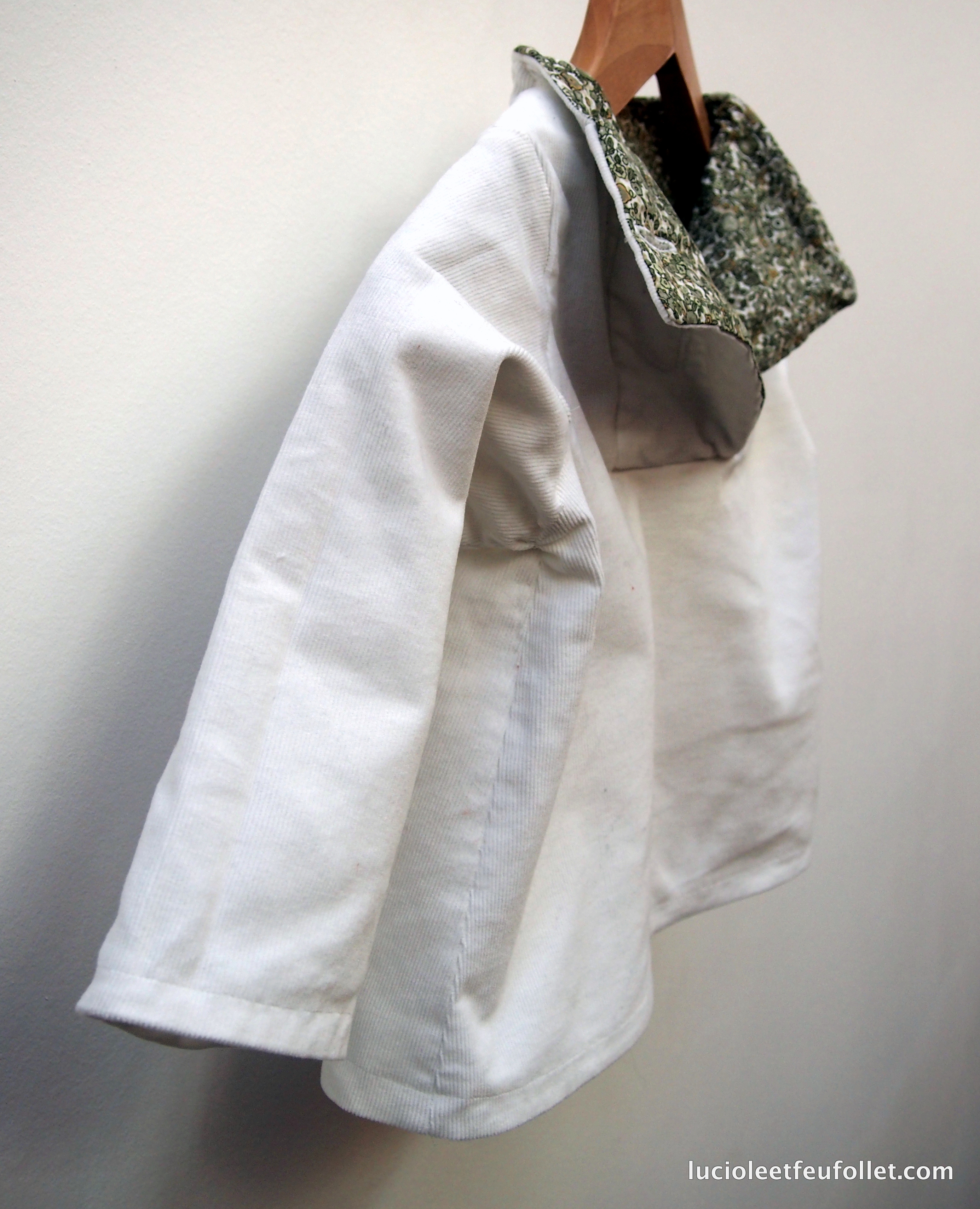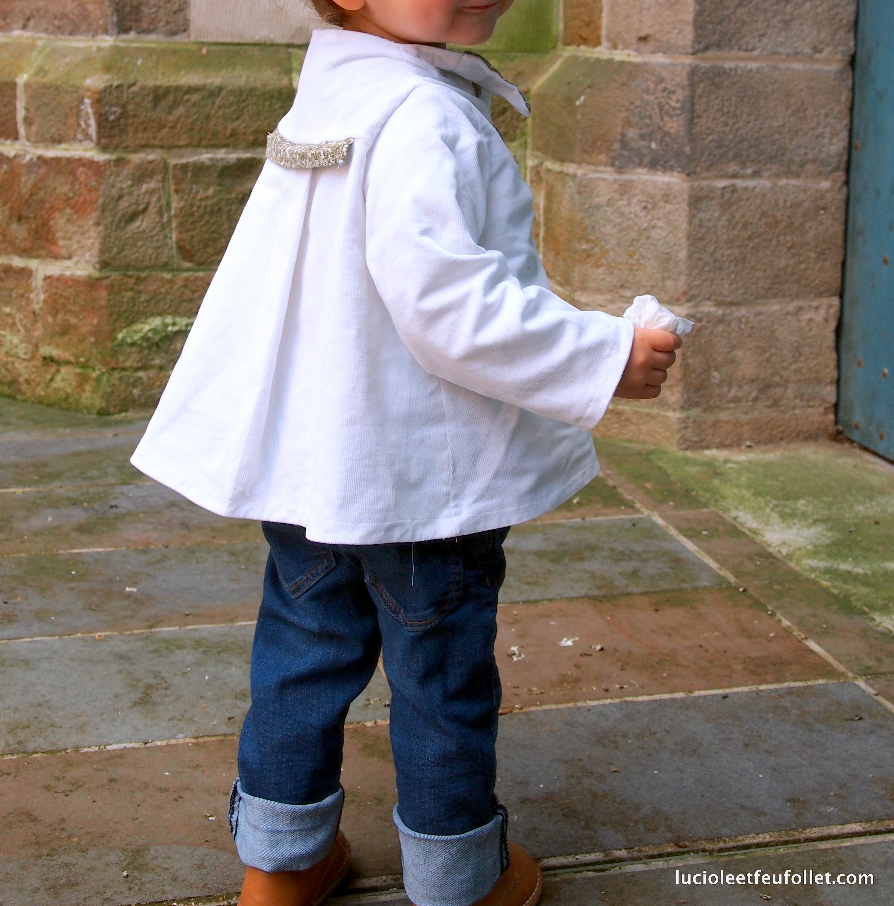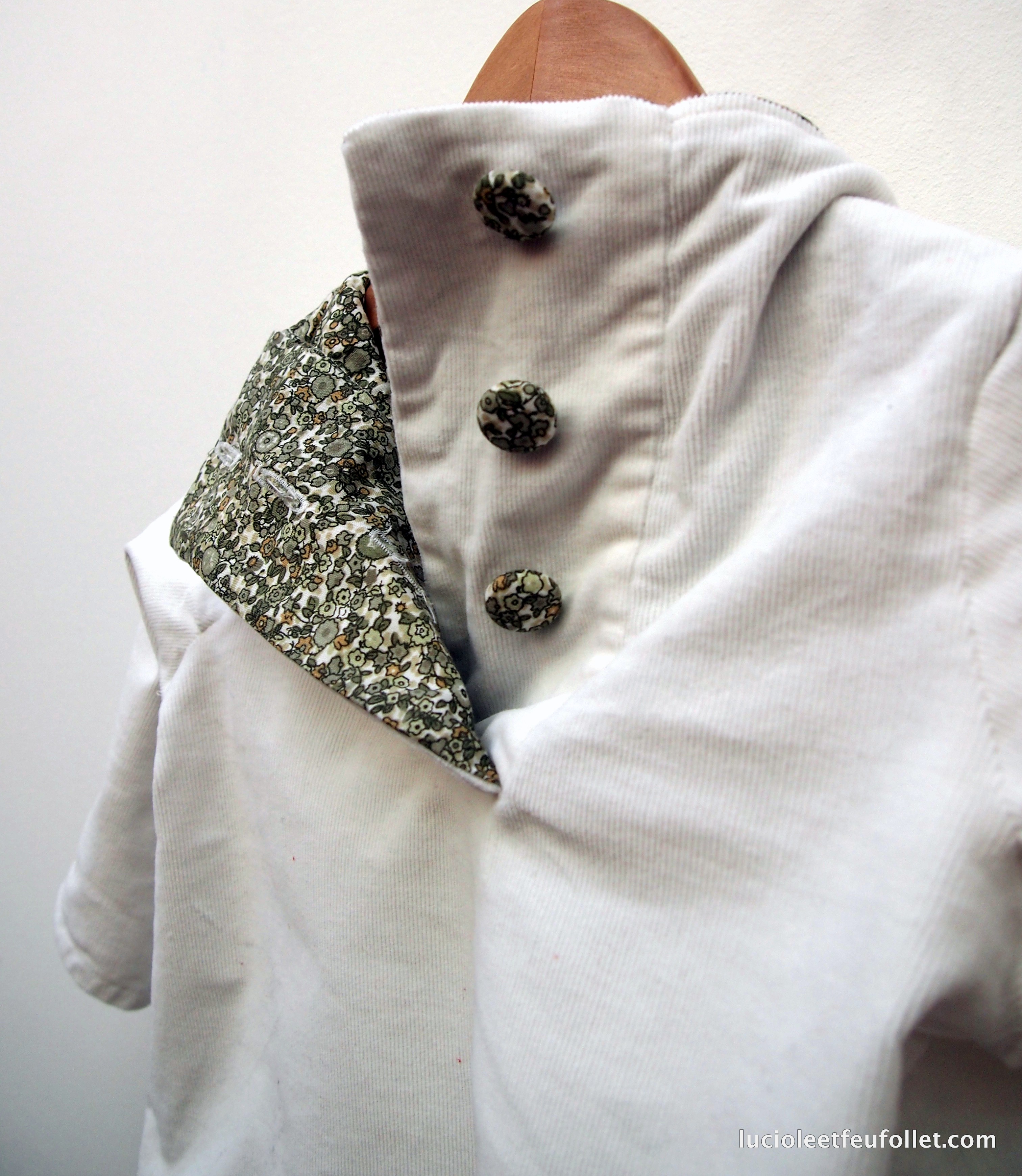 Oh un prince charmant vraiment charmant ! J’aime bien ce col qui monte un peu derrière, on se croirait dans le « Peau d’âne » de Jacques Demy ! Bravo à la couturière et à son mini modèle ! Vivement ta robe de princesse !