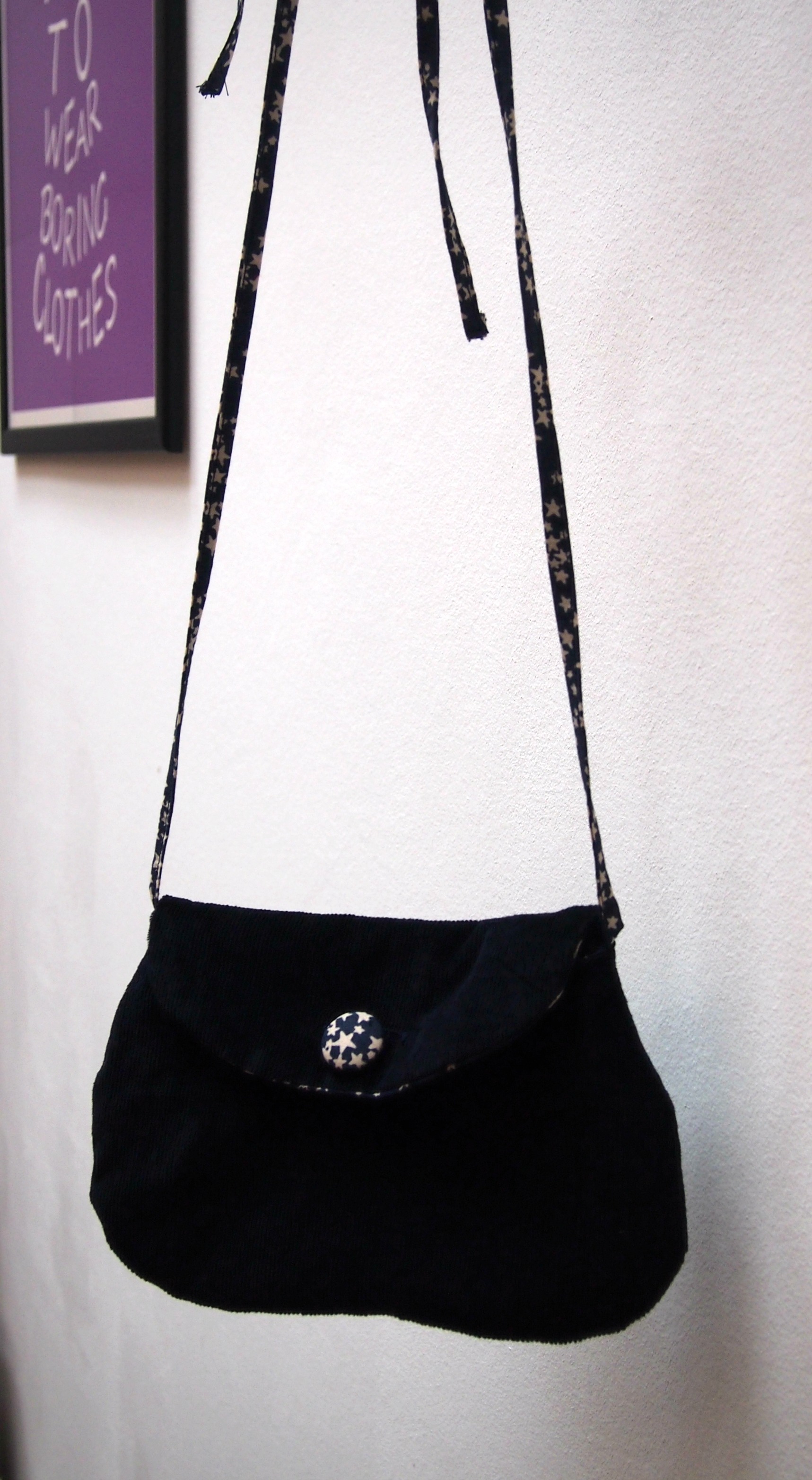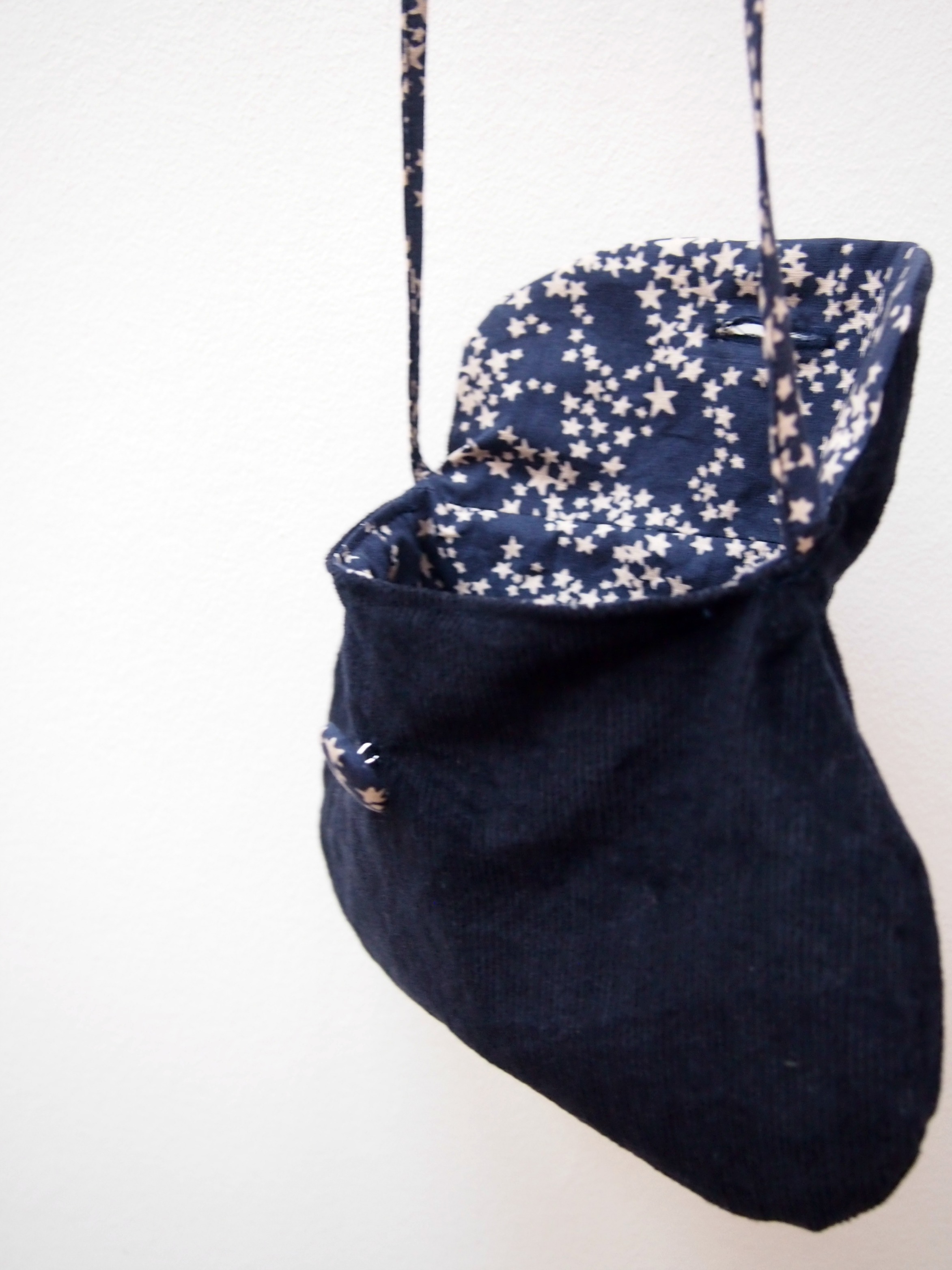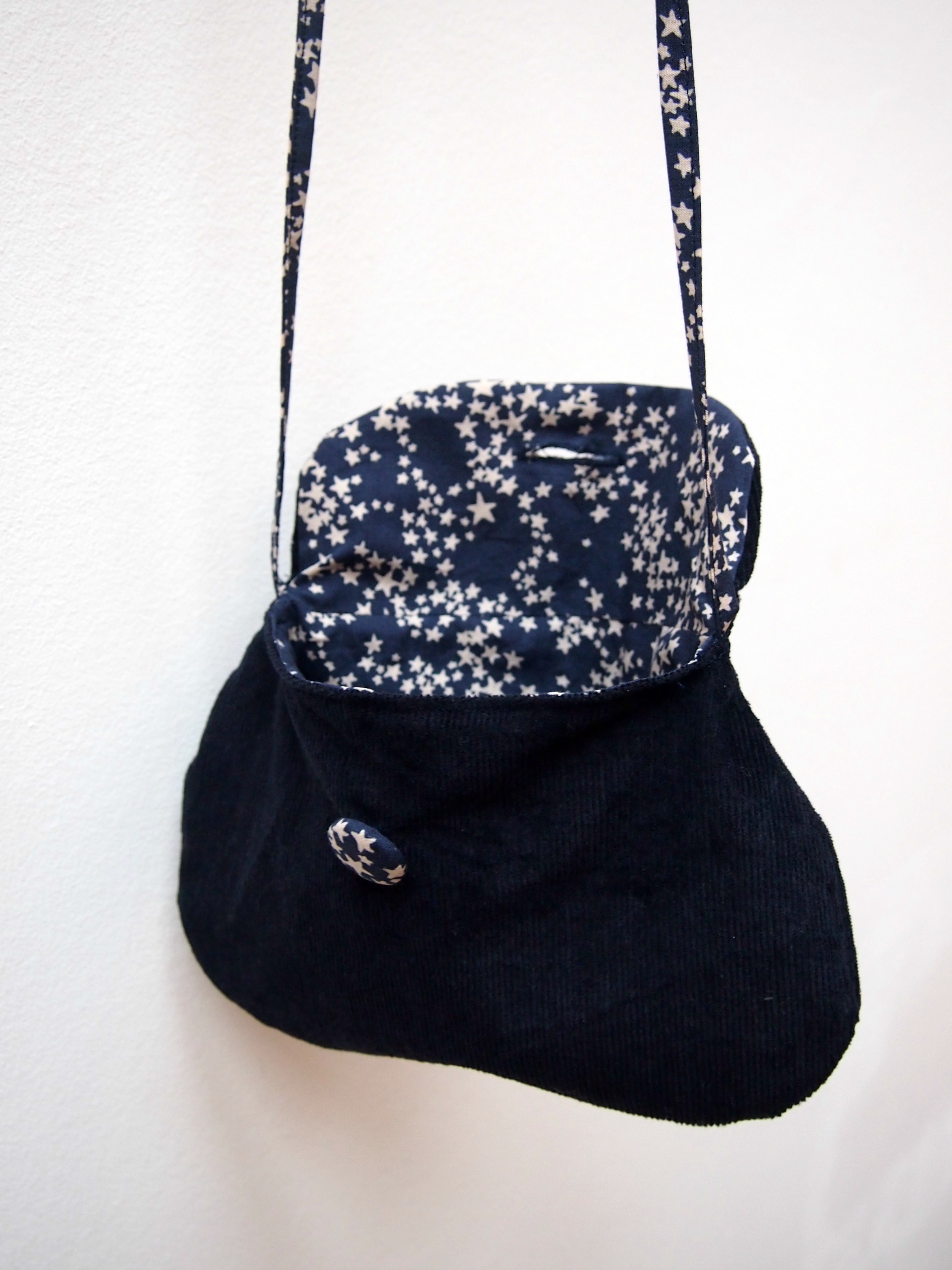 Pour une petite fille discrète, sa marraine a choisi d’offrir un petit sac sobre mais étoilé. Et j’ai cousu ça: