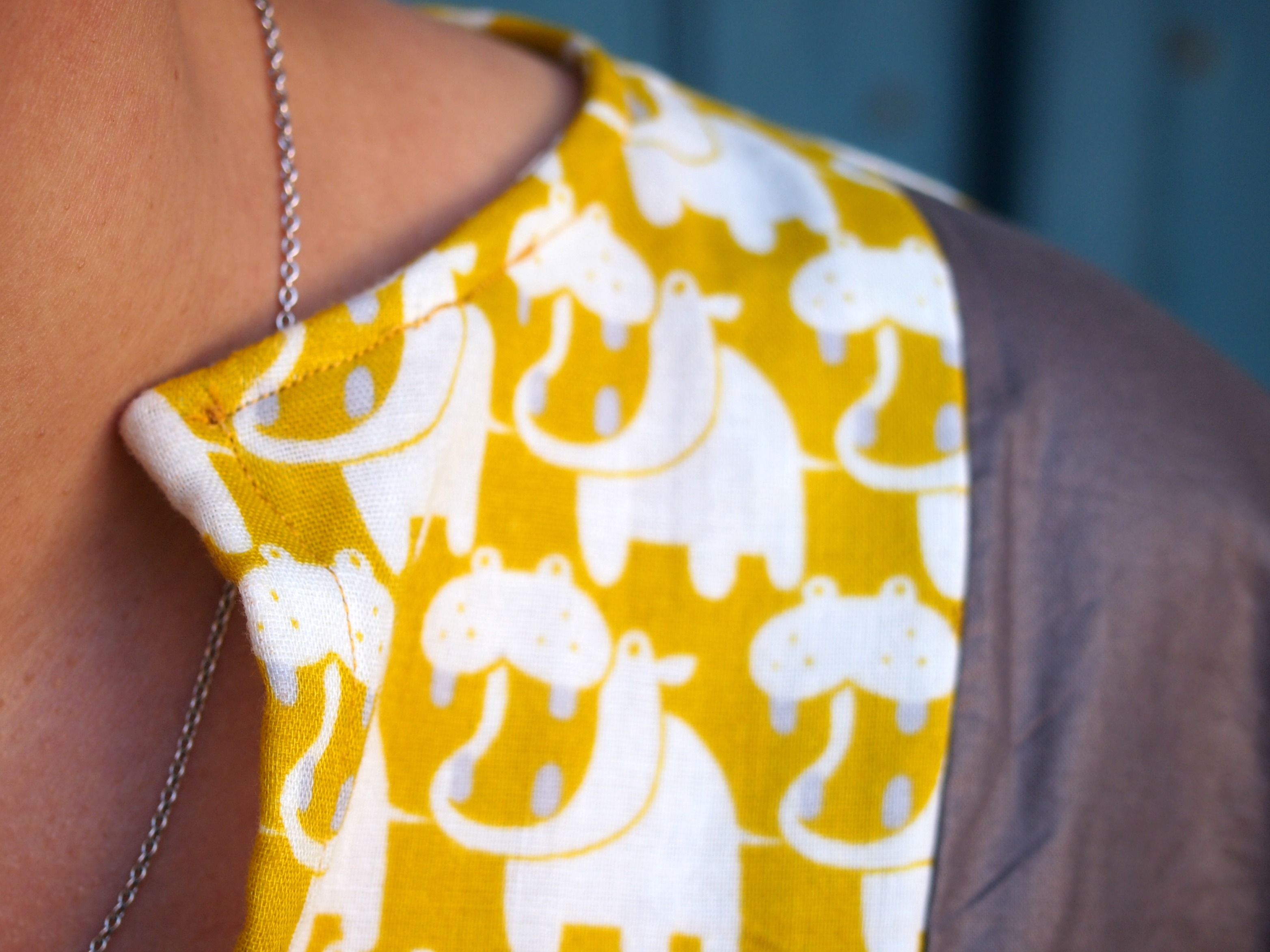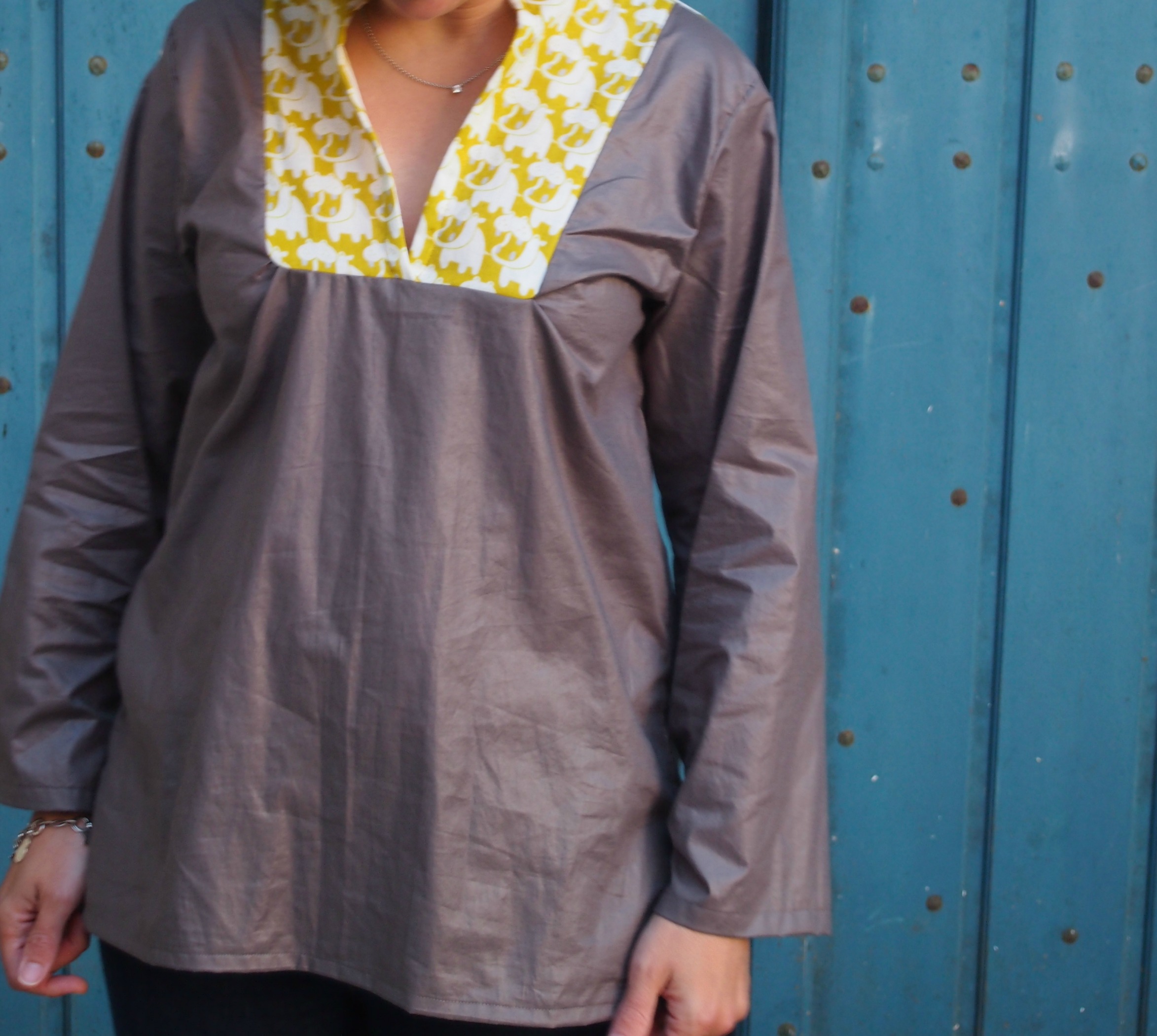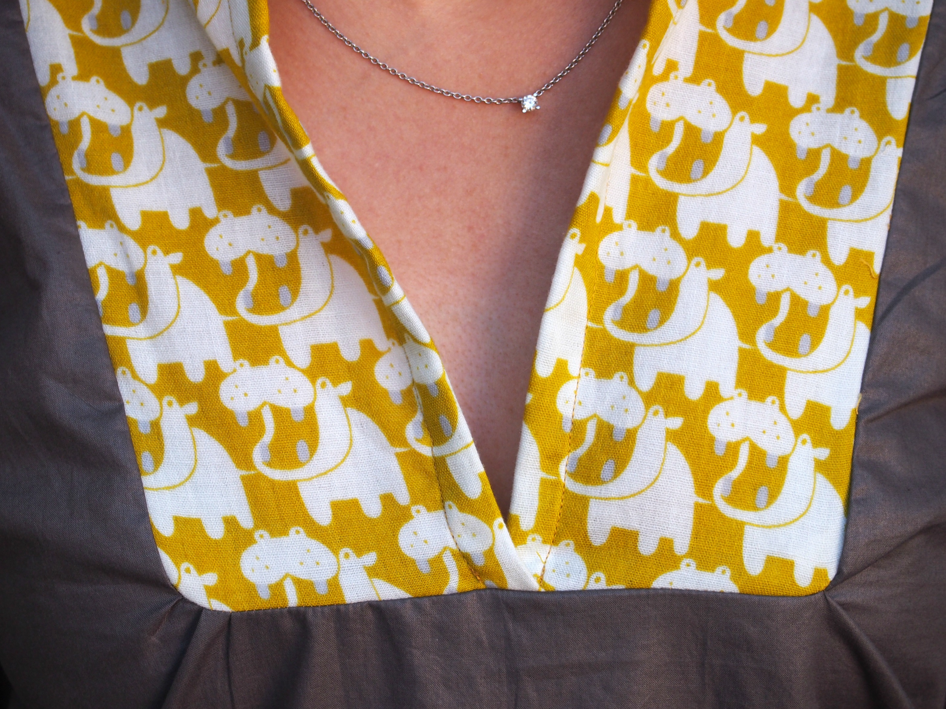 1. Tu as eu raison d’utiliser cet imprimé pour toi. En empiècement, il est très sympa (et pas gamin du tout). J’imagine le plaisir que tu dois ressentir à la porter!