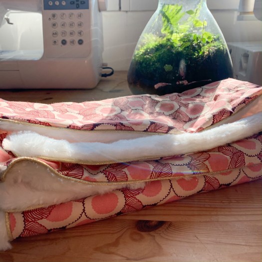 Pour ce petit bébé tout frais, j’ai cousu une petite couverture rose. J’adore offrir des couvertures de naissance. C’est le genre de cadeau qui sert toujours et qui peut durer dans le temps s’il plaît.