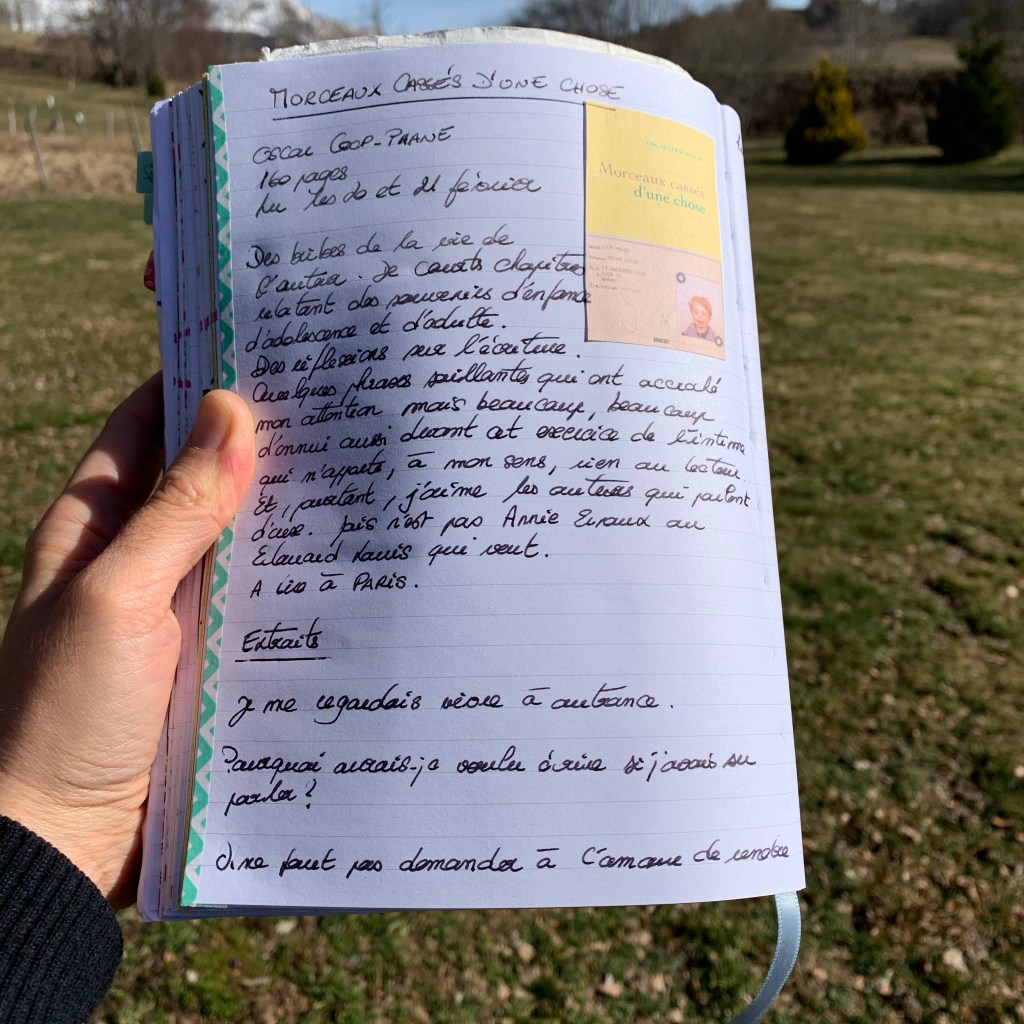 Quelques phrases saillantes ont accroché mon attention mais j’ai surtout ressenti beaucoup, beaucoup d’ennui devant cet exercice égocentré qui n’apporte, à mon sens, rien au lecteur. Et pourtant, j’aime les auteurs qui parlent d’eux! Encore faut-il qu’ils m’ouvrent à une pensée ou à une poésie singulière.